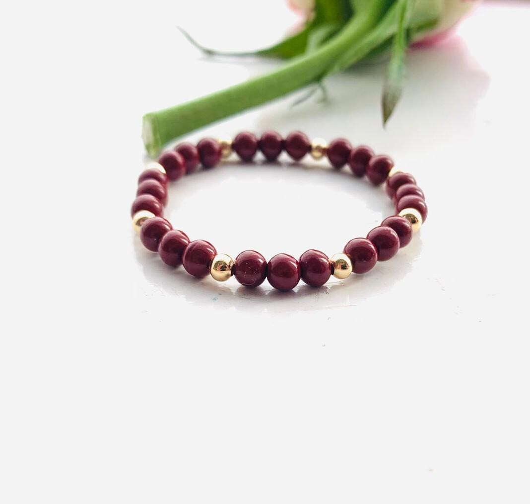Enhance your child's unique style with a one-of-a-kind, red stone and gold plated bracelet.