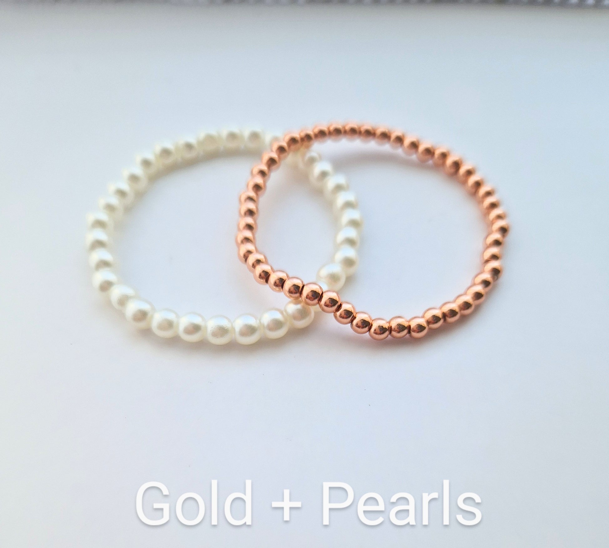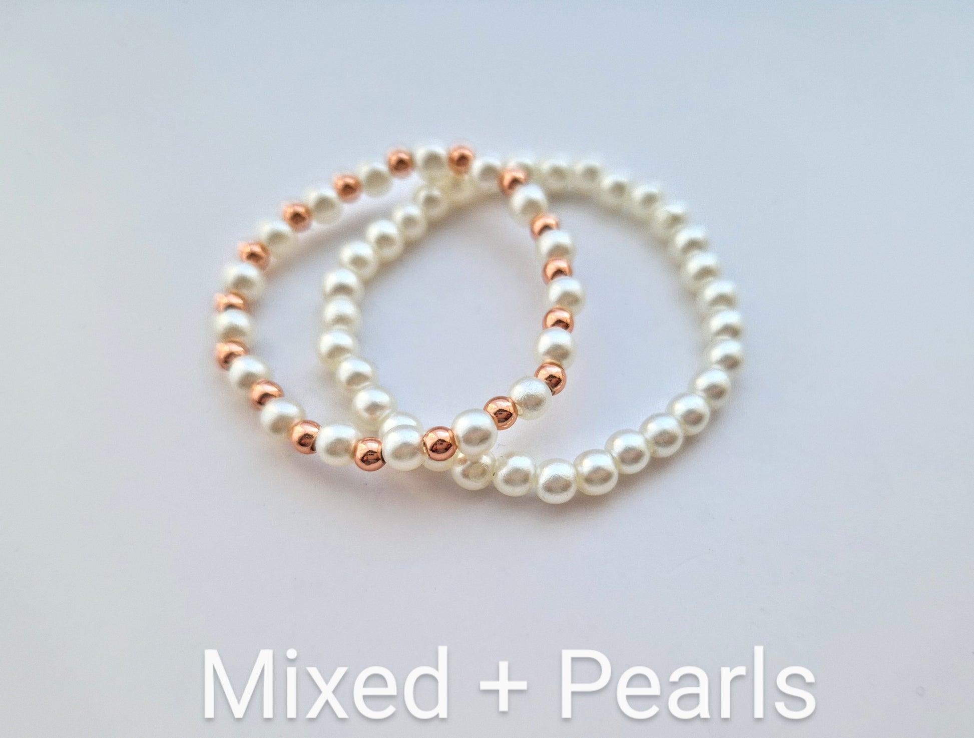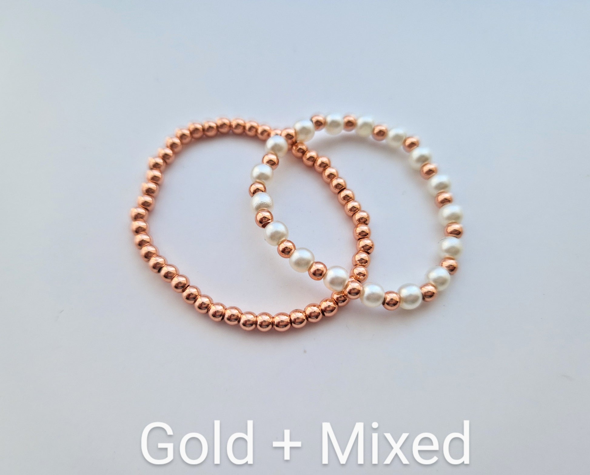 🎀The bracelets are made out of 3 mm rose gold plated beads & faux pearls.
