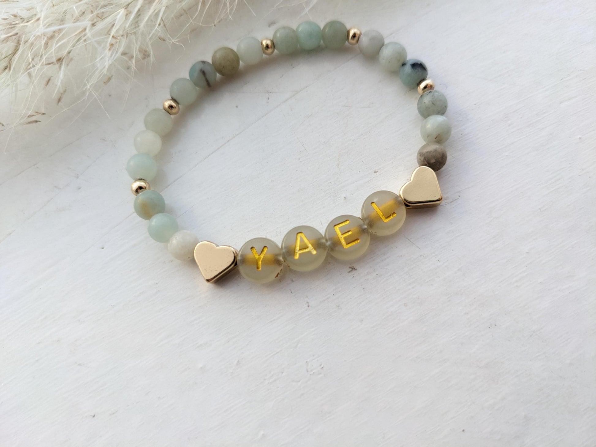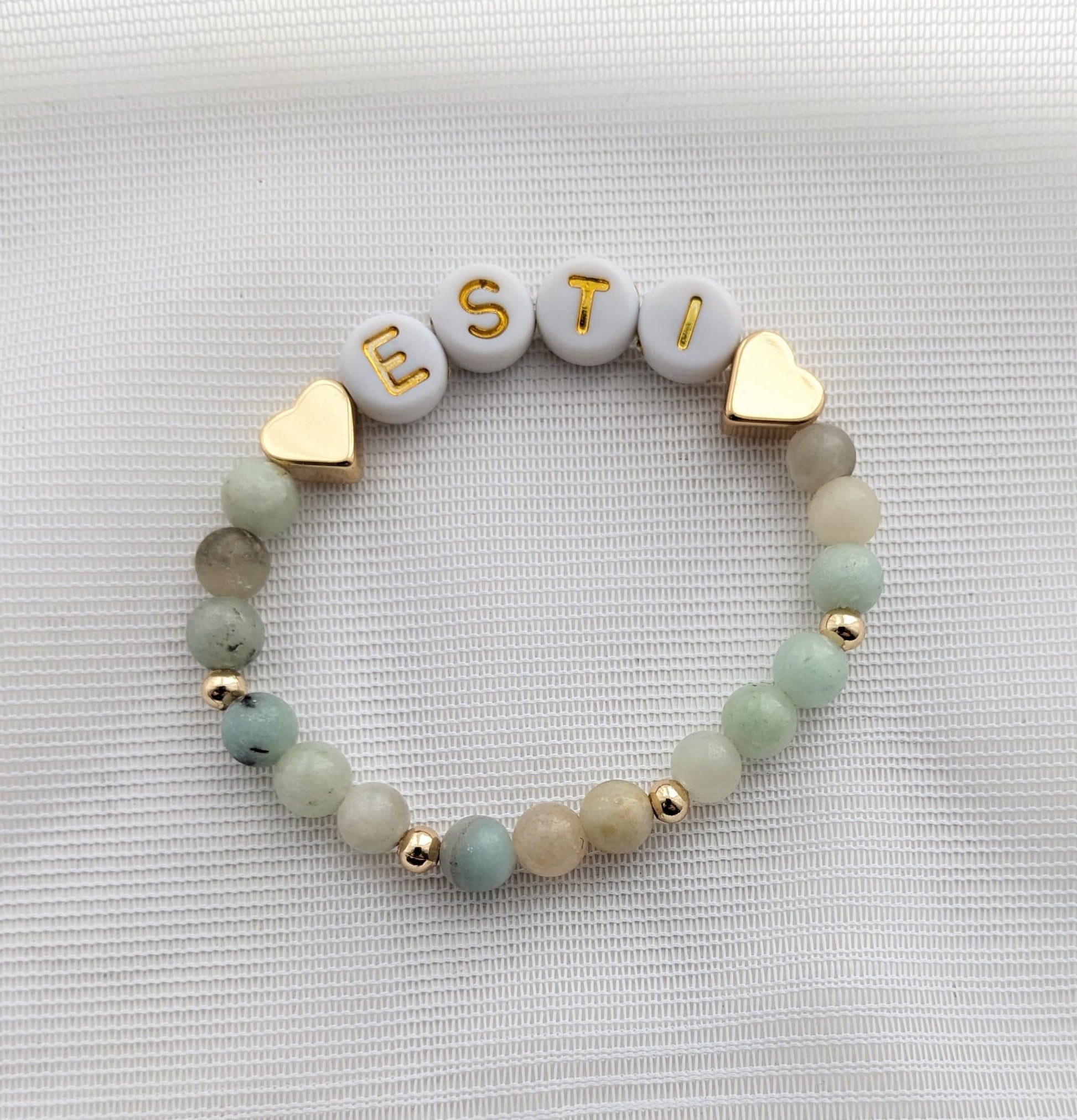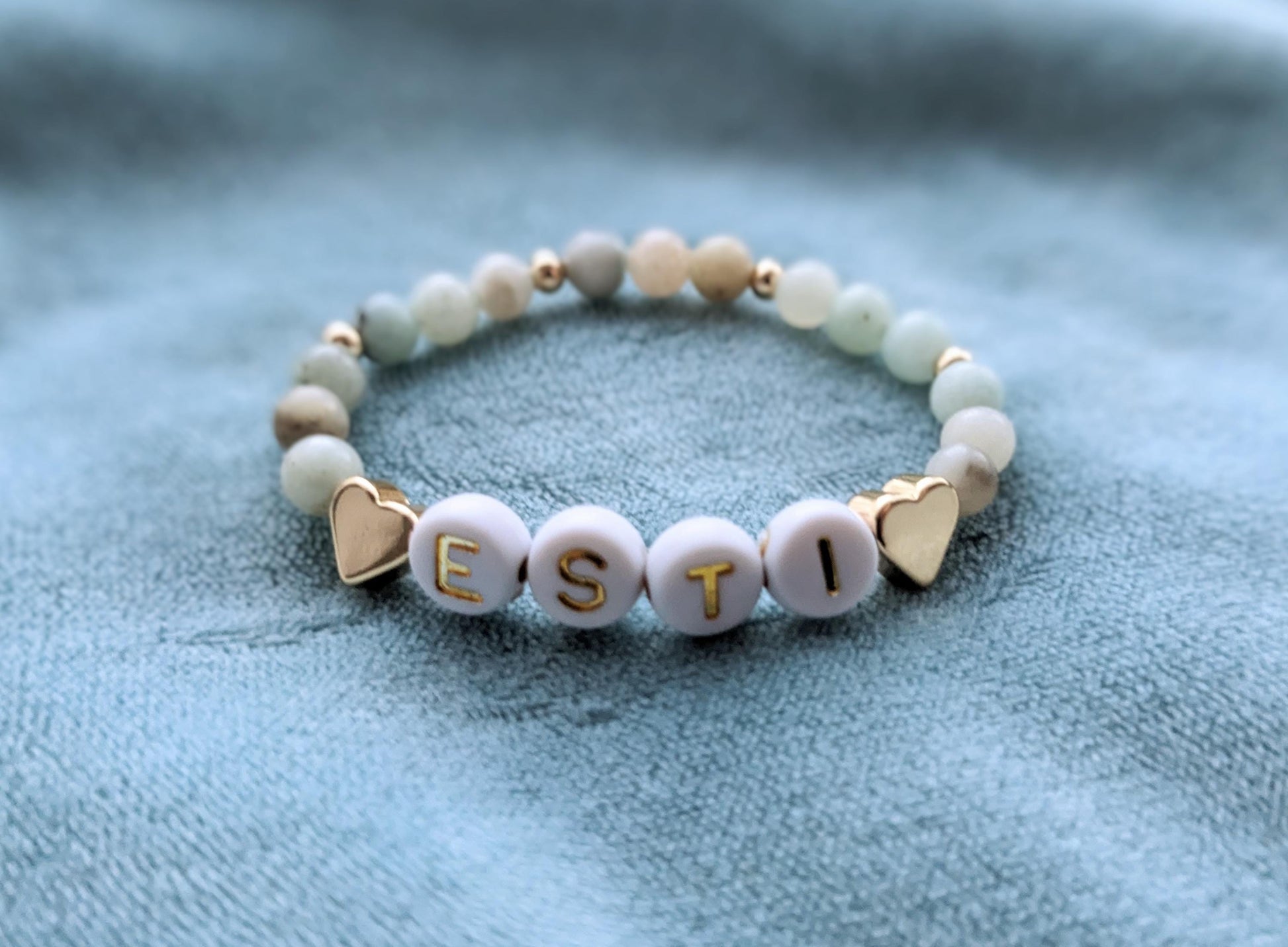 Blue stone name bracelet