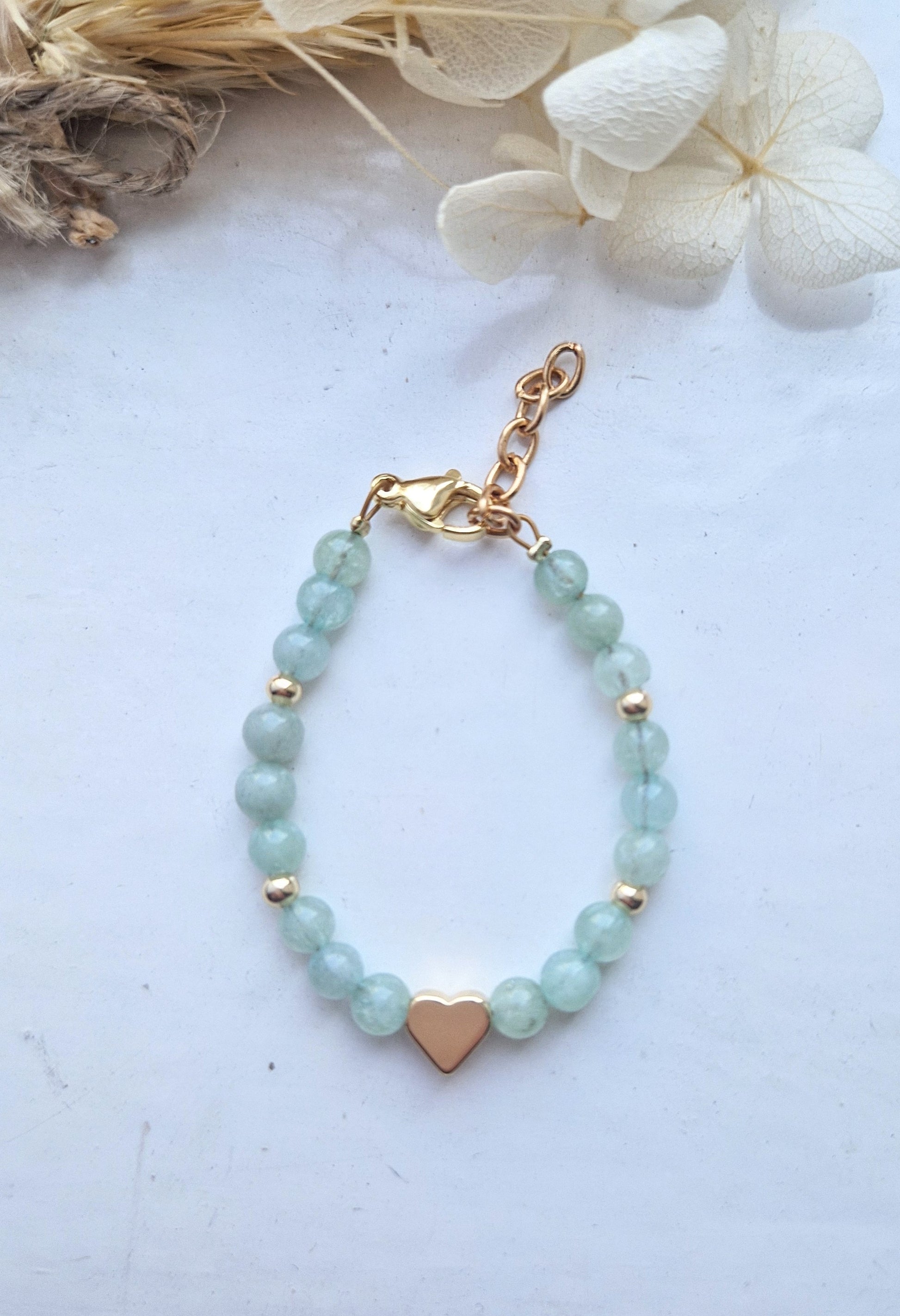 A green bracelet with a heart in the middle. Perfect for birthdays or just because.
